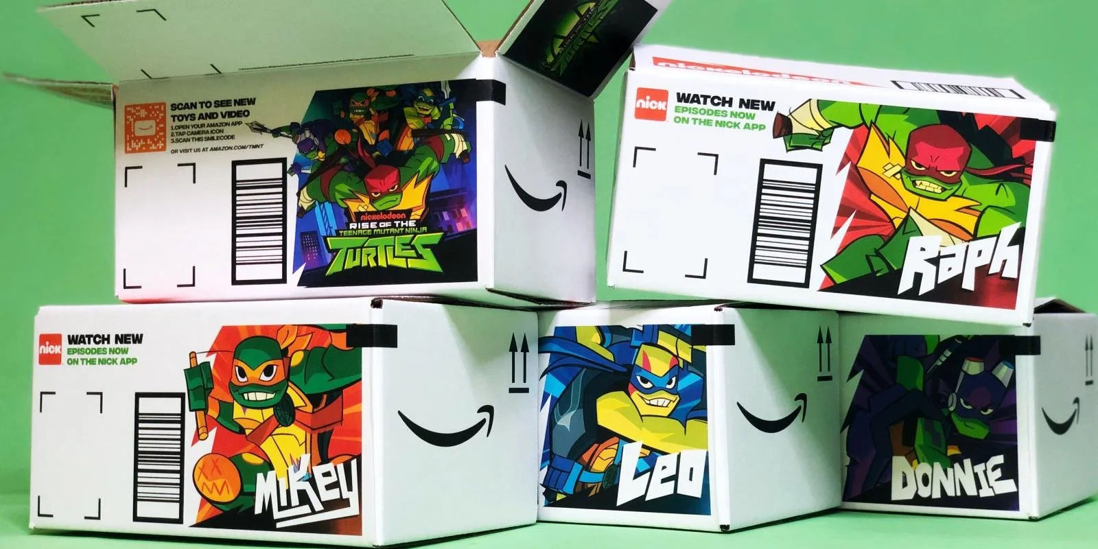 A dynamic brand collaboration between Amazon and Nickelodeon means that, for a limited time, the smiles appearing on Amazon boxes could be that of the Teenage Mutant Ninja Turtles. The online shopping giant featured Rise of the Teenage Mutant Ninja Turtles on Amazon boxes to help promote the new series which premiered on television on Sept. 17 2018.